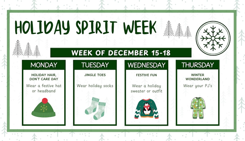 December 15-18: Holiday Spirit Week! See below for details.